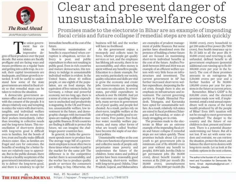 Hyderabad - 16th November 2023: The Foundation for Democratic Reforms (FDR) - India's leading think-tank and research hub for vital governance reforms, orchestrated its campaign titled 'The Inevitable' at Ramanaidu Studios, Film Nagar, on Thursday. This initiative aims to raise awareness and sensitize the public about the repercussions of the Old Pension Scheme. Dr. Jayaprakash Narayan, former civil servant and MLA, currently serving as the General Secretary of FDR, led the session.