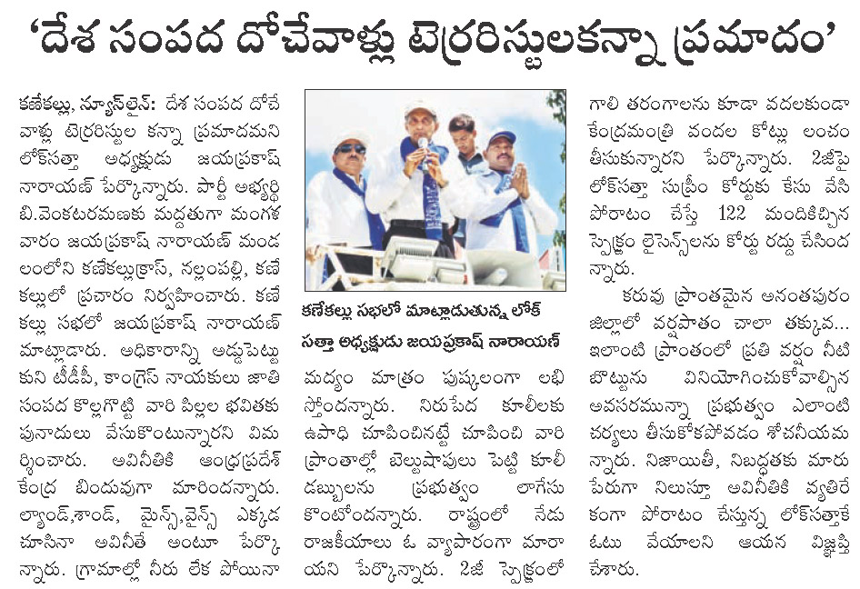 దేశ సంపద దోచేవాళ్ళు టెర్రరిస్టులకన్నా ప్రమాదం