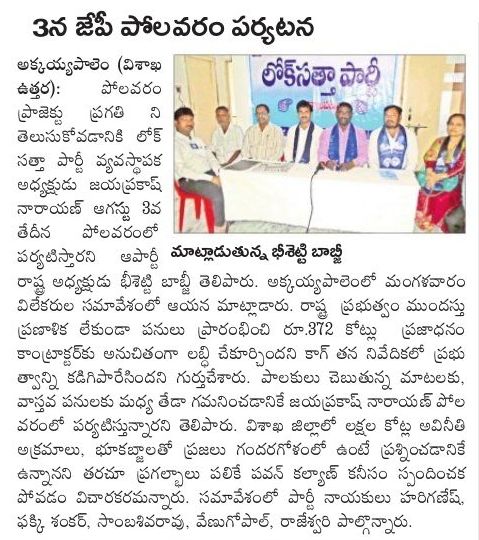 ఆగస్టు 3న జేపీ పోలవరం పర్యటన: భీశెట్టి
