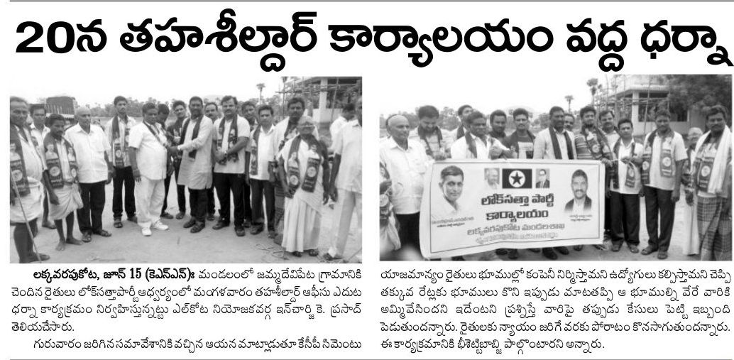 20న తహశీల్దార్ కార్యాలయం వద్ద ధర్నా