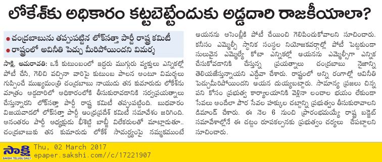 లోకేశ్ కు అధికారం కట్టబెట్టేందుకు అడ్డదారి రాజకీయాలా?