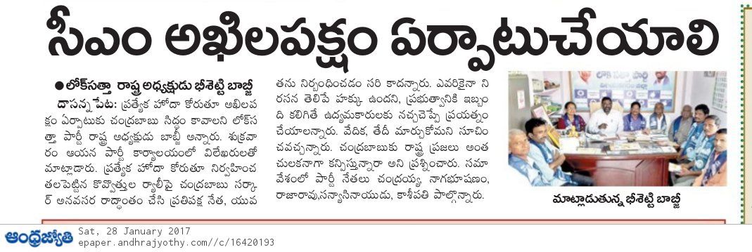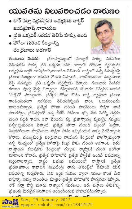 Jayaprakash Narayan is among the many political leaders who are now speaking up on the issue. Joining the hashtag #APDemandsSpecialStatus, he took to Facebook to say that "It is time we stand united and achieve our right."