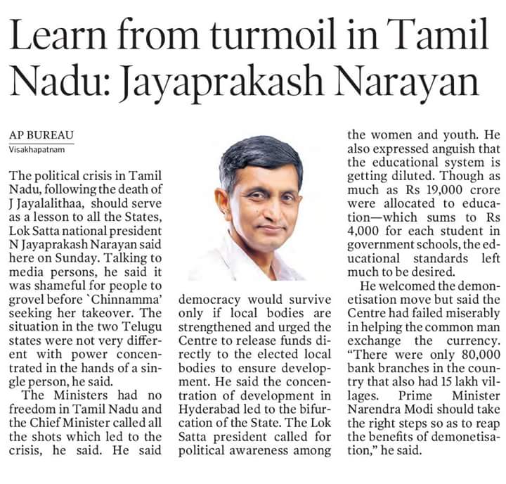 VISAKHAPATNAM: Millions of common people are suffering to exchange their hard-earned money due to the “incompetence” and “bungling” of the Narendra Modi Government after demonetisation of high denomination notes, Lok Satta Party founder Jayaprakash Narayan has said.