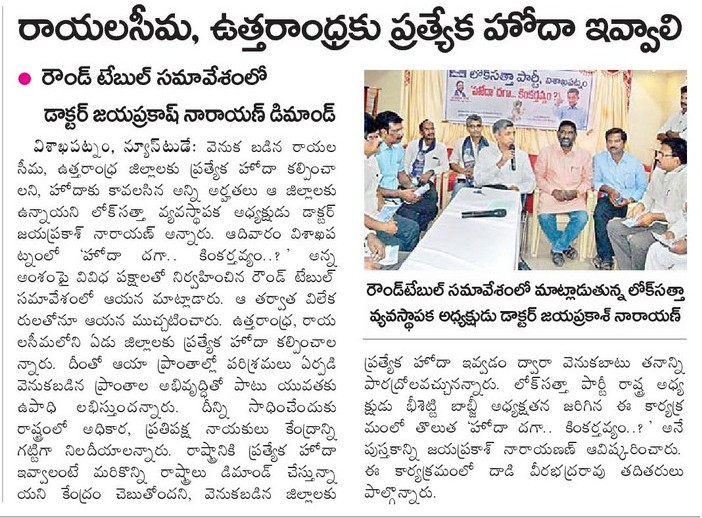 ప్రజల అవసరాలు ఆకాంక్షలు గుర్తించాలి - లోక్ సత్తా వ్యవస్థాపకుడు జయప్రకాశ్ నారాయణ్ Monday, December 19, 2016 - 18:42