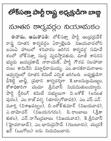 లోక్ సత్తా పార్టీ రాష్ట్ర అధ్యక్షుడిగా బాబ్జీ
