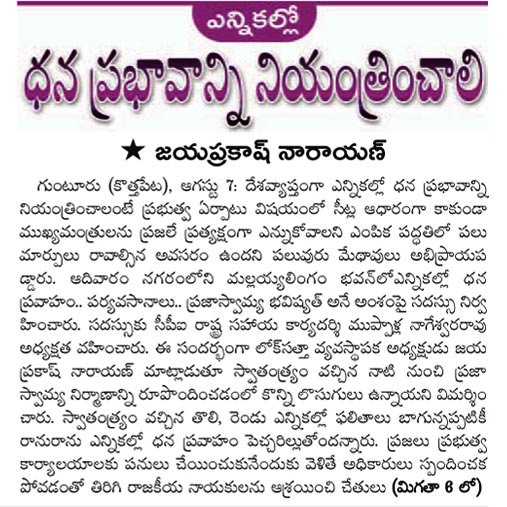ప్రత్యక్ష ఎన్నికలతో అవినీతి తగ్గుతుంది: లోక్ సత్తా జేపీ