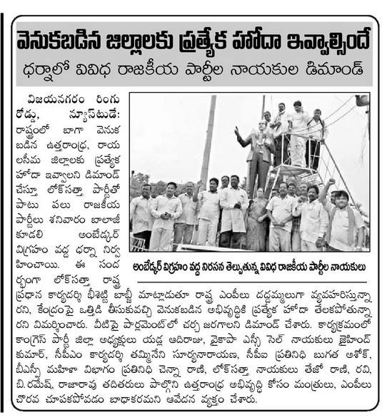 వెనుకబడిన జిల్లాలకు ప్రత్యేక హోదా ఇవ్వాల్సిందే
