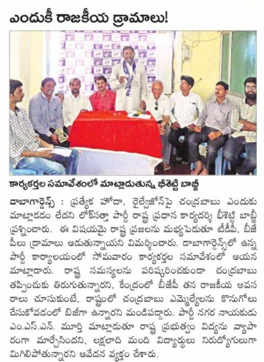 ప్రజాసమస్యలపై పోరు కొనసాగిస్తాం: లోక్ సత్తా