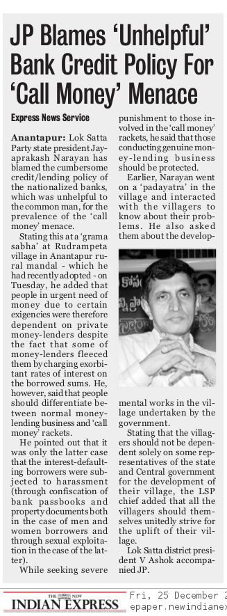 JP Blames 'Unhelpful' Bank Credit Policy for 'Call Money' Menace