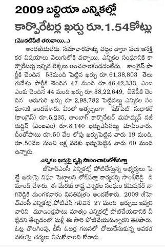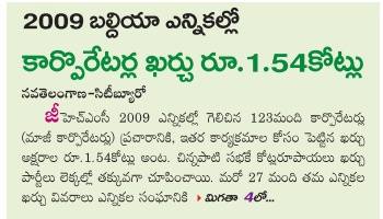 2009 బల్దియా ఎన్నికల్లో కార్పొరేటర్ల ఖర్చు రూ.1.54 కోట్లు