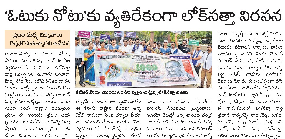 'ఓటుకు నోటు'కు వ్యతిరేకంగా లోక్ సత్తా నిరసన