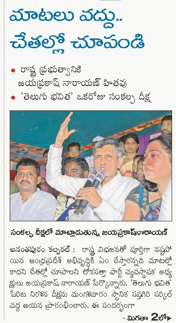 5న లోక్ సత్తా 'సంకల్ప దీక్ష'