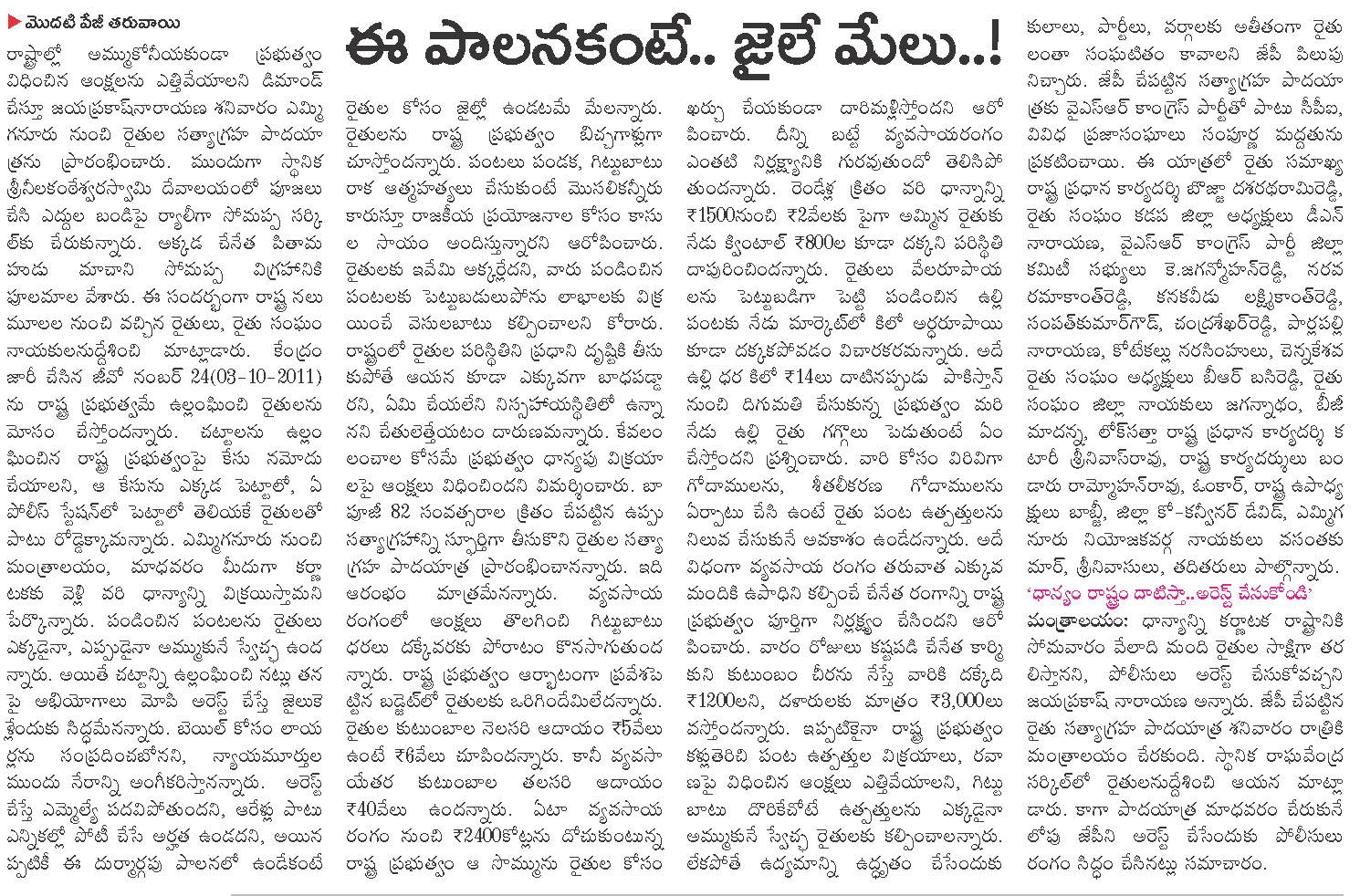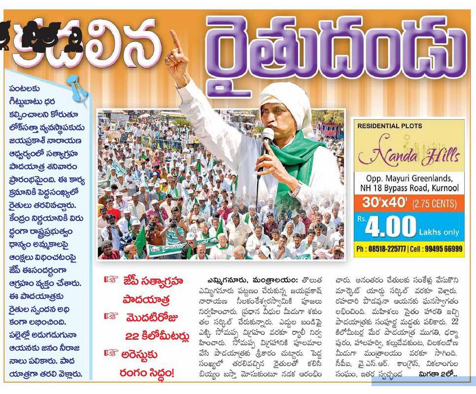 (Jayaprakash Narayan is a former IAS officer and now President of Loksatta Party. He is an MLA in the Andhra Pradesh assembly)