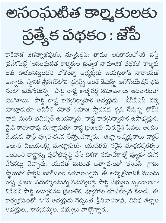 అసంఘటిత కార్మికులకు ప్రత్యేక పథకం: జేపీ