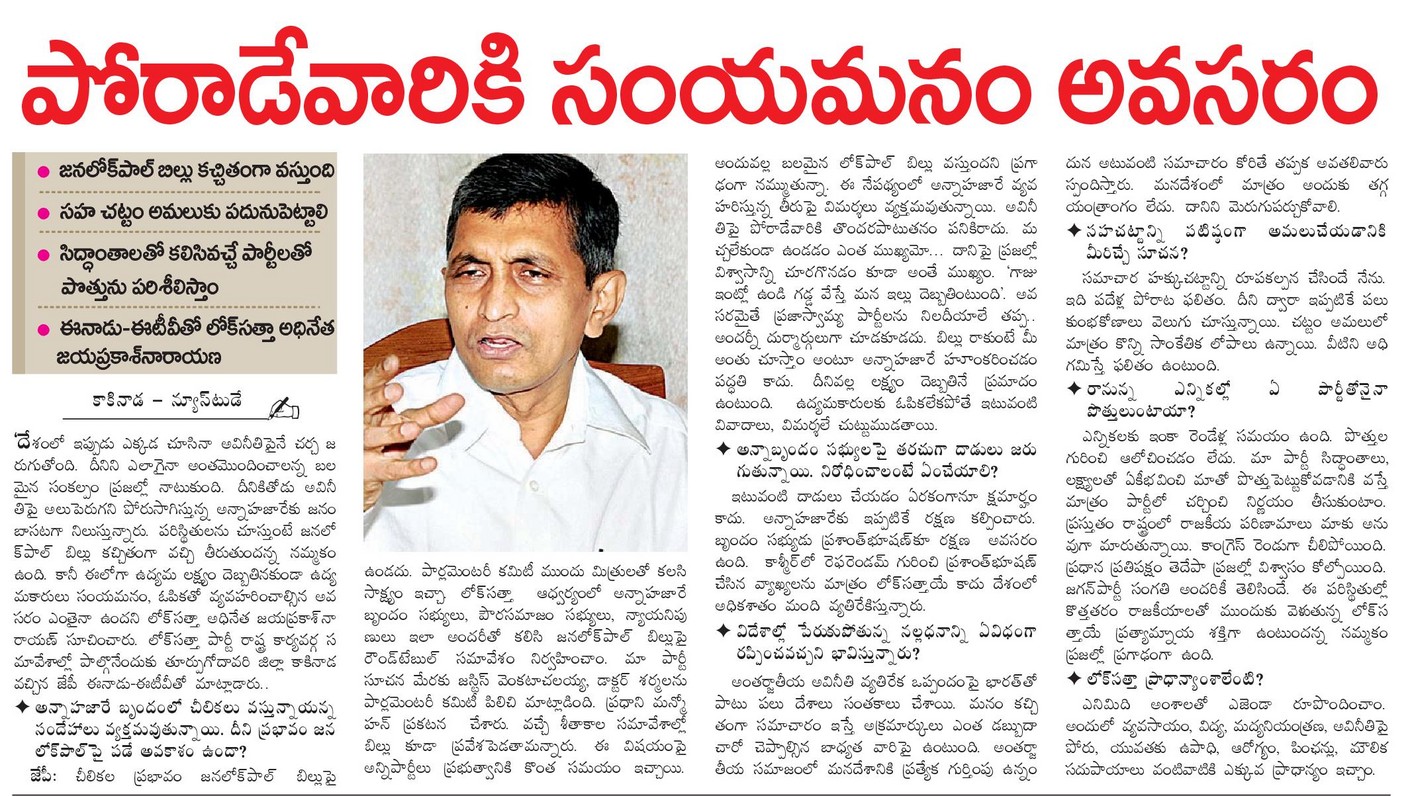 లోక్ సత్తాకు పెరిగిన ఆదరణ