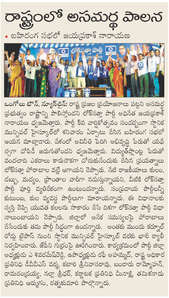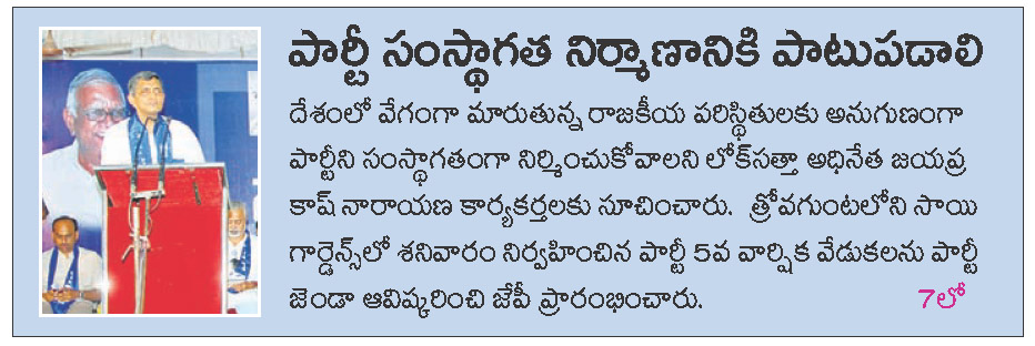 లోక్ సత్తా వార్షికోత్సవం వైభవోపేతం