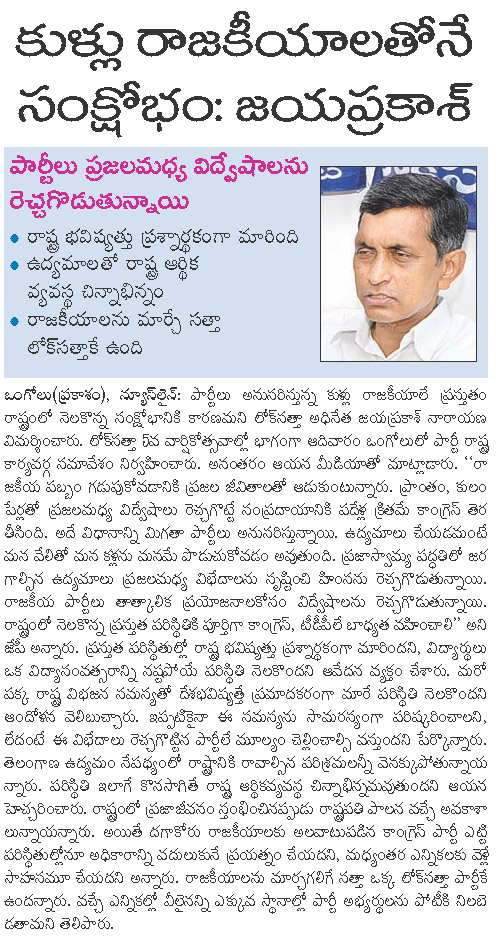 కుళ్ళు రాజకీయాలతోనే సంక్షోభం: జయప్రకాష్