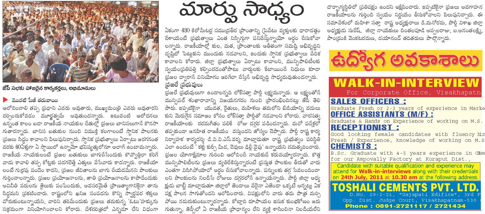 Lok Satta times July 16th-31st, 2011 Lok Satta times July 16th-31st, 2011 can be downloaded from the following link http://www.loksatta.org/cms/documents/lstimes/lstimes-2011-07-16-31.pdf Saturday, July 16, 2011 - 18:51