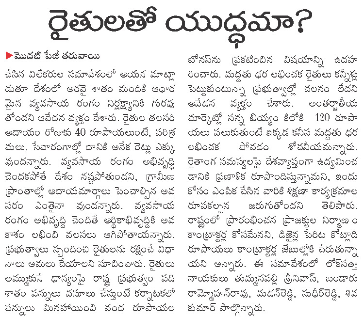Dr.JP With Farmers At Varni (Andhra Jyothy) Courtesy: Andhra Jyothy Thursday, November 11, 2010 - 19:05