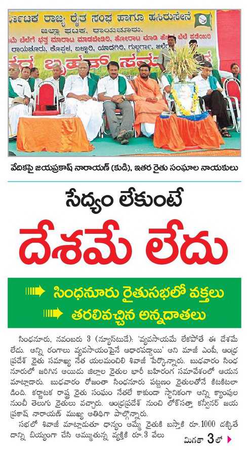 Dr.JP With Farmers At Sattupalli (Andhra Jyothy) Courtesy: Andhra Jyothy Tuesday, November 9, 2010 - 18:04