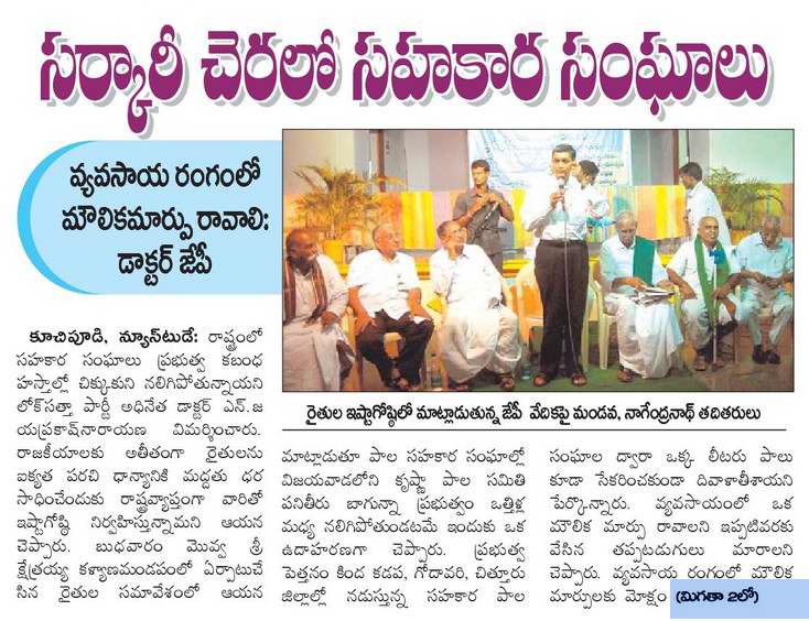 Dr.JP At Piduguralla in Guntur District (From Eenadu) Courtesy: Eenadu Wednesday, October 27, 2010 - 18:23