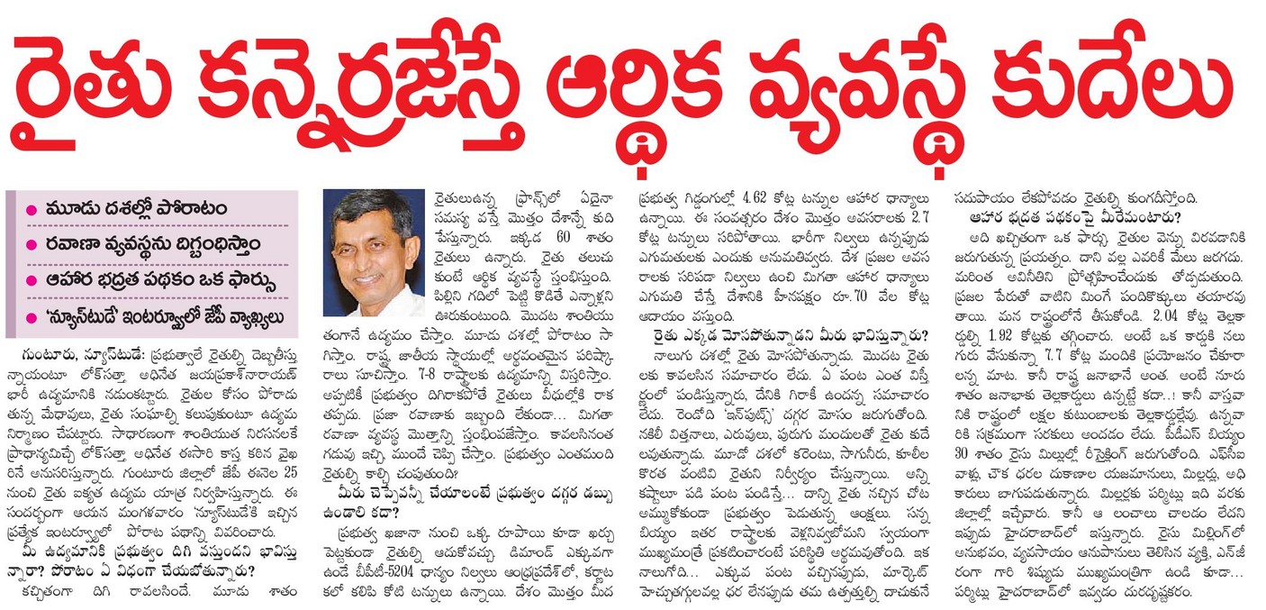 Dr.JP's Interview With Eenadu on Farmers