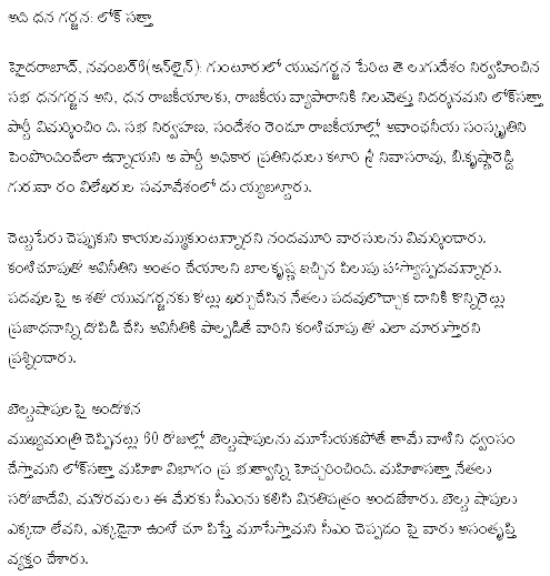 English and Foreign Languages University Vice-Chancellor Abhay Maurya also agrees with Rao and says that there is perhaps no one but Jayaprakash Narayan with whom some parallel could be drawn. "He is an activist known for his integrity and honesty. He is the only one who has tried to do something different in the state. Even though he probably has no chance of victory he comes the closest to being the 'Obama' of our state," says Maurya.