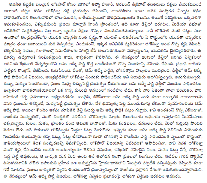 State Lok Satta Party President Katari Srinivasa Rao said in a media statement that the Working Committee is discussing the present political crisis in the State caused by the bankrupt policies of traditional parties. Since a solution to the crisis lies only in alternative politics, the Lok Satta Party will draw up an action program to emerge as an alternative political force.