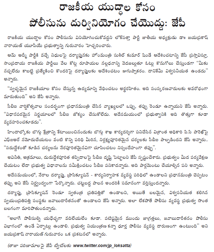 (To know more about Dr. JP’s views on latest developments, please click http://www.twitter.com/jp_loksatta)