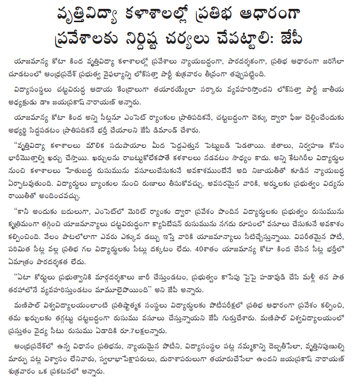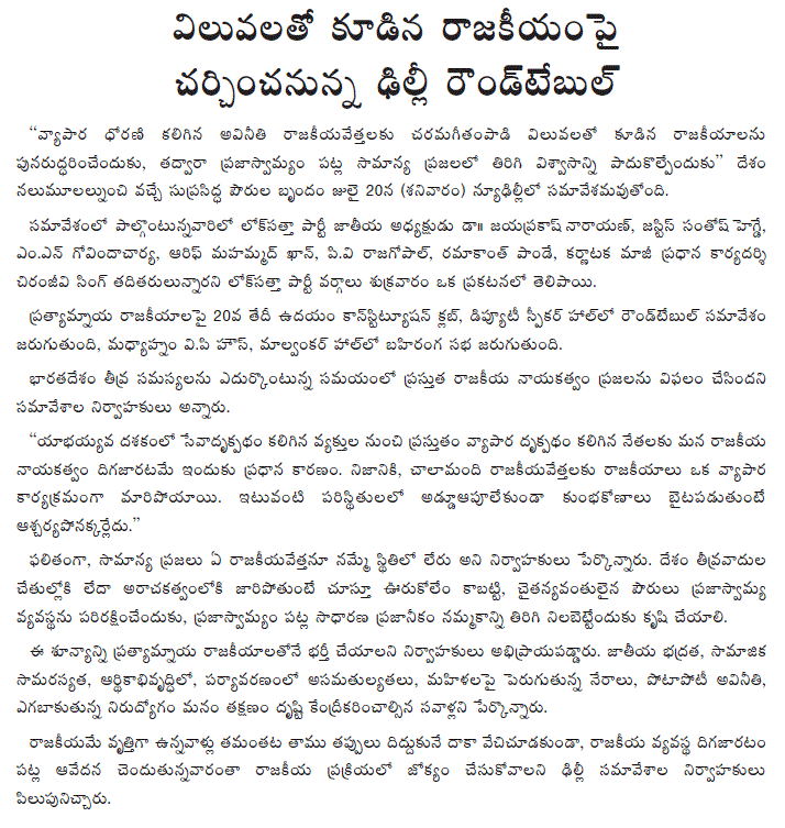 Giving this information in a media statement, Mrs. Hyma Praveen, Lok Satta leader, said that Lok Satta Party national President Dr. Jayaprakash Narayan, freedom fighter Mrs. Mallu Surajyam and social activist Mrs. Satyavani will take part in the meeting.
