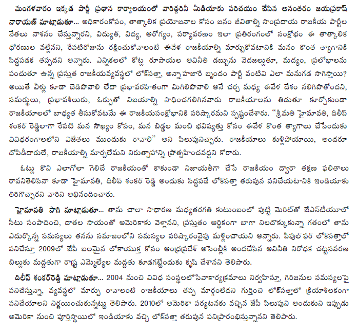 At 5-00 p.m., there will be a public meeting at Sundaraiah Vignana Kendram in Bagh Lingampalli. Dr. JP, K.Nageswar, (M.L.C.), K.Ramachandra Murthy (HMTV Editor-in-Chief) and movie directors S. S. Rajamouli, Tammareddy Bharadhwaja will participate.