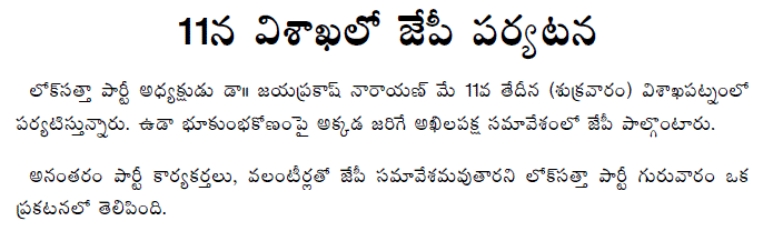 Dr. JP Visiting Vizag on 11th
