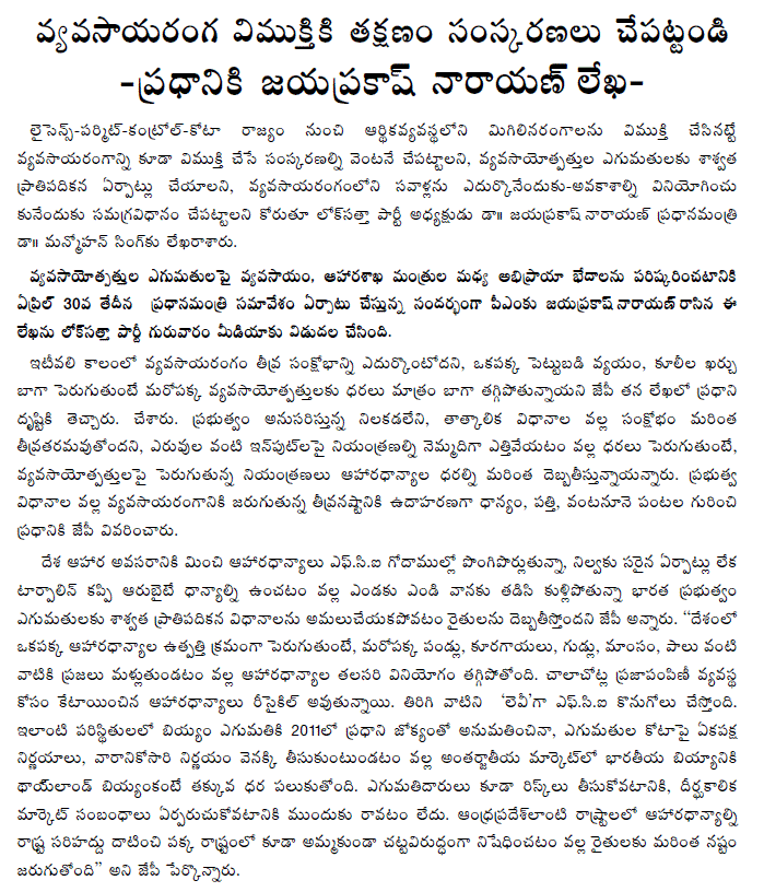 Lok Satta Party President Dr. Jayaprakash Narayan will be delivering the Vavilala Gopalakrishnayya Memorial Lecture at 10-00 a.m. on Sunday, April 29 at Ravindra Bharati in Hyderabad.