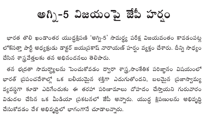 The Lok Satta Party is ready to give tickets to contest elections and offer positions within the organization to all sincere and competent people irrespective of their caste, religion, region and economic status.
