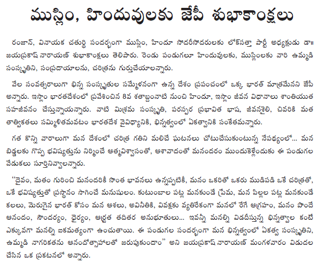 Dr. JP greets Muslims and Hindus