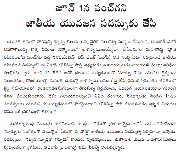 In a media statement, Lok Satta Party Working President D. V. V. S. Varma recalled that the Lok Satta, which has been waging a relentless and multi-pronged war against corruption, backs all agitations against corruption.