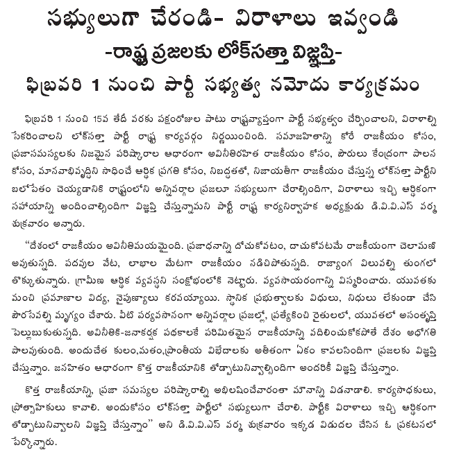 Dr. JP said that Indians were no more corrupt than people in other countries, and they are second to none in the world in their honesty. Those who loot the nation in the name of 2G spectrum licenses, mining leases and contracts are the corrupt. Common people are victims of corruption and not corrupt when they, as a last resort, offer bribes to get what is legitimately due to them. “Let corruption victims unite and fight against corruption without losing time,” said Dr. JP and added that the youth who constitute 73 percent of people and command 94 percent of future should take the lead in the interest of their future.