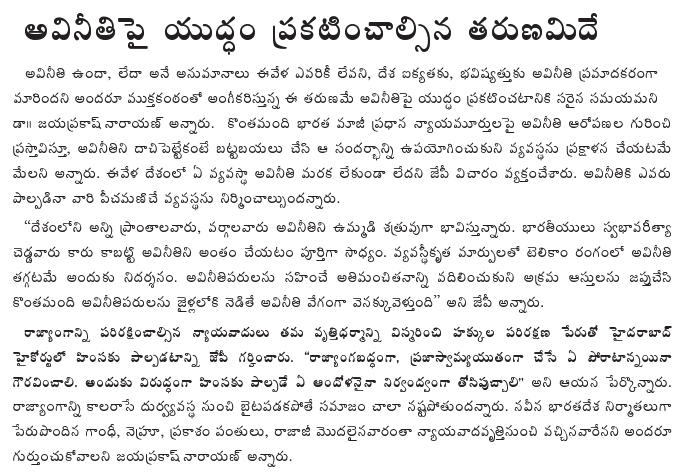 Dr. JP said that against the backdrop of corruption getting deeply entrenched in the country, the Lok Satta Party transcending party lines would agitate for the establishment of an autonomous anti corruption mechanism.