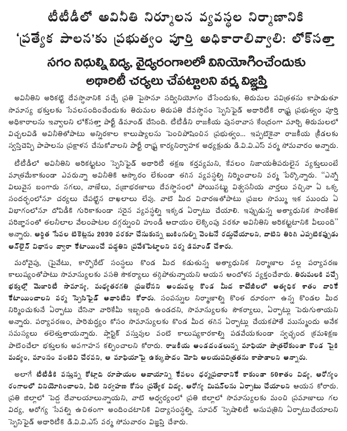 “It is an issue that cannot and should not be decided on the streets,” Lok Satta Party spokespersons Katari Srinivasa Rao and P. Bhaskara Rao told a media conference. Such obstructionist forms of agitation will merely accentuate the trend among industrialists to flee the State. The State’s rate of growth has already slumped below even the national average, not to talk of certain advanced States.