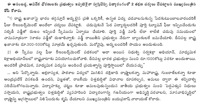 Talking to the media, party leaders Katari Srinivasa Rao, P. Bhaskara Rao, and Karthik Chandra wanted the Union Government to amend the Constitution providing for mandatory devolution of powers and resources on local governments by State Governments.