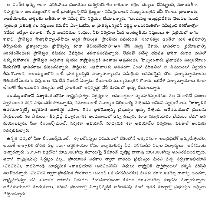 The party also demanded creation of 1000 new towns in the State as a means to promote economic development and prevent migration of people from rural areas to far off urban centers in search of work and livelihood.