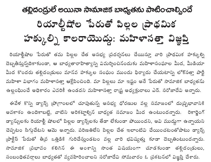 On the State Government’s move to increase the management quota in professional colleges from the present 30 to 40 percent, the Lok Satta leaders said they could understand Government’s anxiety to limit the outgo on fee reimbursement and grant of scholarships. As of now, the State has allocated only Rs.2300 crore against the needed Rs.3490crore.