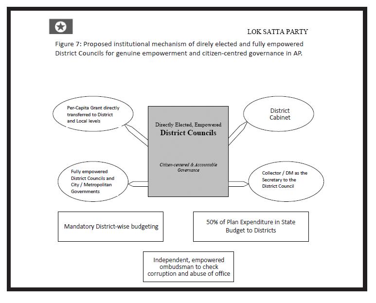 III. Establishing elected and fully empowered District Councils and City/Metro governments - mandatory district-wise budgeting - per capita grants directly to local governments - strengthening the third tier of government in the Indian federal structure.
