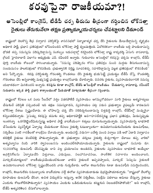 Addressing party workers after unfurling the national flag at the party headquarters, Dr. JP said that in a centralized system the growth opportunities are open only to the rich and powerful and eluded over 80 percent of the population. Unless people are made partners in governance through decentralization of power and every child is enabled to have quality education and health care, poverty will continue to persist, he said.