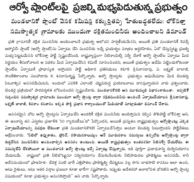 Mr. DVVS Varma, Party Vice-President and Mr. V. Laxman Balaji, party spokesman, said the party’s Working Committee, which met here yesterday with Dr. Jayaprakash Narayan in the chair, also decided to constitute a Political Affairs Committee with Mr. DVVS Varma as Chairman. The other members of the committee are: Mr. Katari Srinivasa Rao, Mrs. S. Manorama, Mr. Bhisetty A. Babji, Mr. P. Ravi Maruth, Mr. A. Iramamurthy, Mr. Y. D. Rama Rao, Mr. E. Chennayya, and Dr. K. Kondaiah.