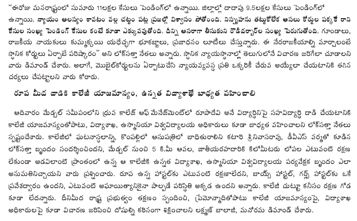 Dr. JP said in his letter, “As the main Opposition party, I urge the Telugu Desam Party to examine the Bill in the light of the urgency and importance of taking firm and concrete steps to curb corruption.”