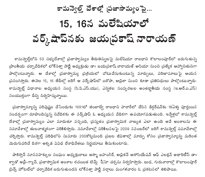The Lok Satta leaders faulted the Chief Minister for converting the regular Cabinet meeting into a Congress election strategy meeting. The Chief Minister’s call to Ministers to focus on winning the elections by mobilizing support of caste-based associations was reprehensible.