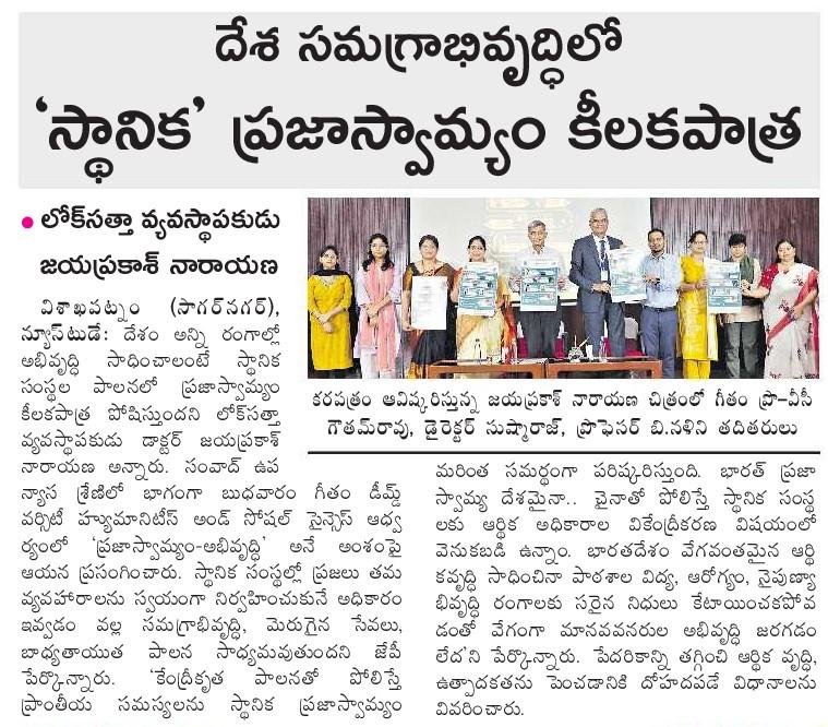 Hyderabad - 16th November 2023: The Foundation for Democratic Reforms (FDR) - India's leading think-tank and research hub for vital governance reforms, orchestrated its campaign titled 'The Inevitable' at Ramanaidu Studios, Film Nagar, on Thursday. This initiative aims to raise awareness and sensitize the public about the repercussions of the Old Pension Scheme. Dr. Jayaprakash Narayan, former civil servant and MLA, currently serving as the General Secretary of FDR, led the session.