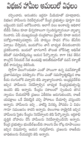 Speaking to the press after the meeting, he said given its past track record, there was hope that the BJP government would work to implement promises made to AP at the time of bifurcation. Mr. Pawan Kalyan expressed concern over the contradictory statements being made on these promises.
