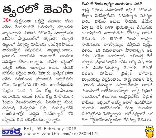 తెలుగు రాష్ట్రాలకు న్యాయం కోసం త్వరలో జెఎసి